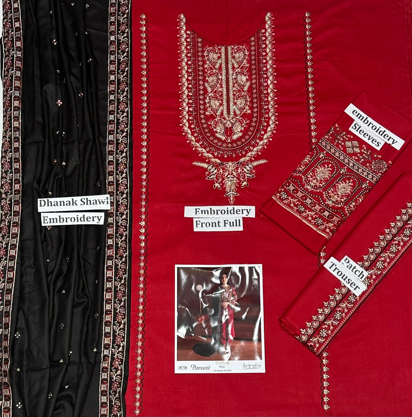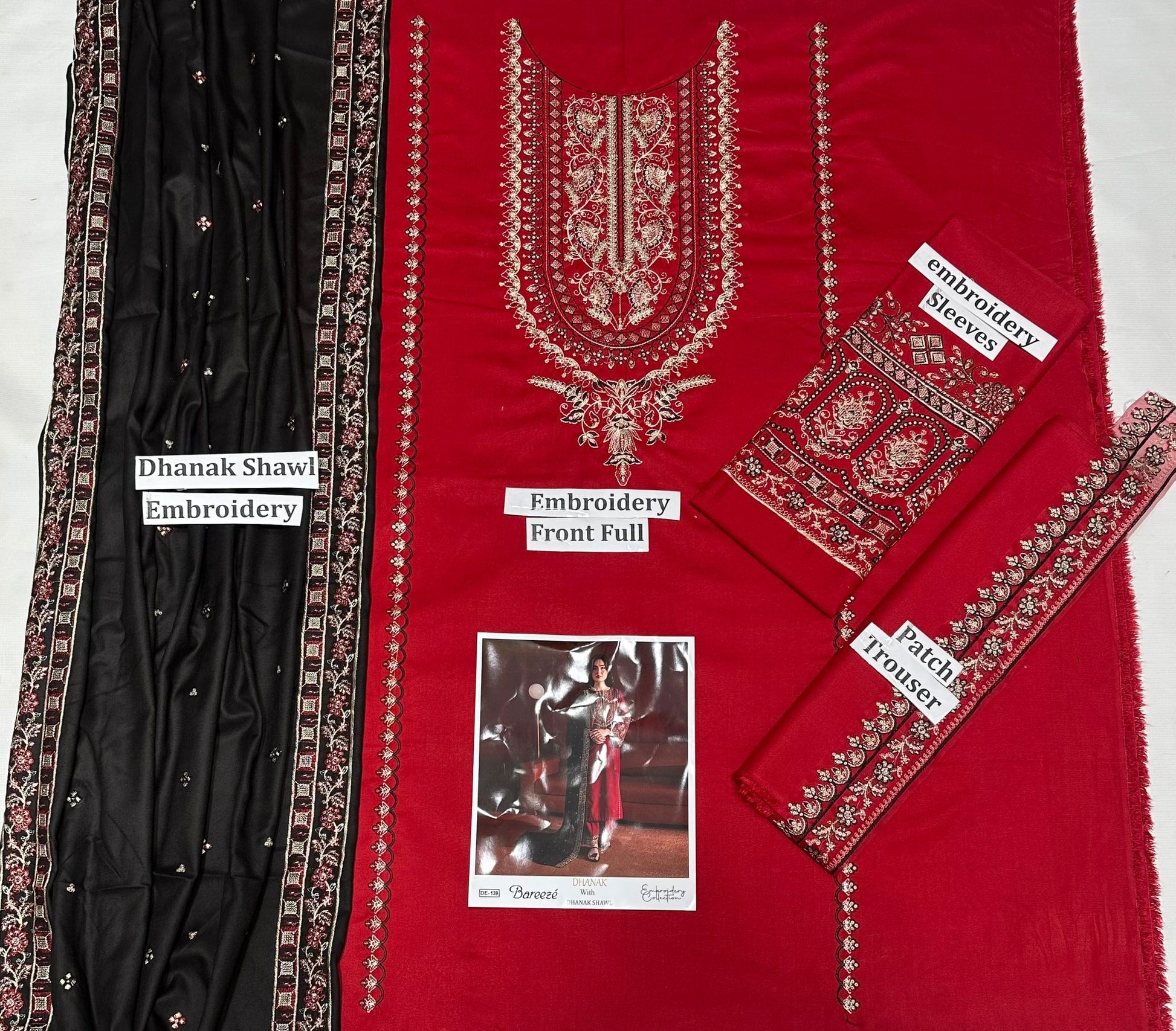 Elevate your winter wardrobe with our 3-Piece Luxury Embroidered Collection, crafted from premium Dhanak fabric for a warm yet elegant look.