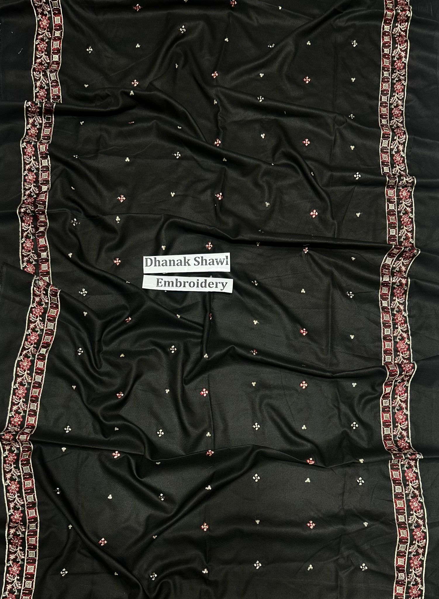 Shawl: Dhanak shawl with full sequin embroidery, giving a luxurious winter vibe.