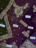 This outfit blends traditional artistry with modern elegance. From the rich embroidery to the graceful chiffon flow, every detail is designed to make you stand out. Whether it’s a festive occasion or a special gathering, this ensemble brings you timeless beauty with a touch of luxury.