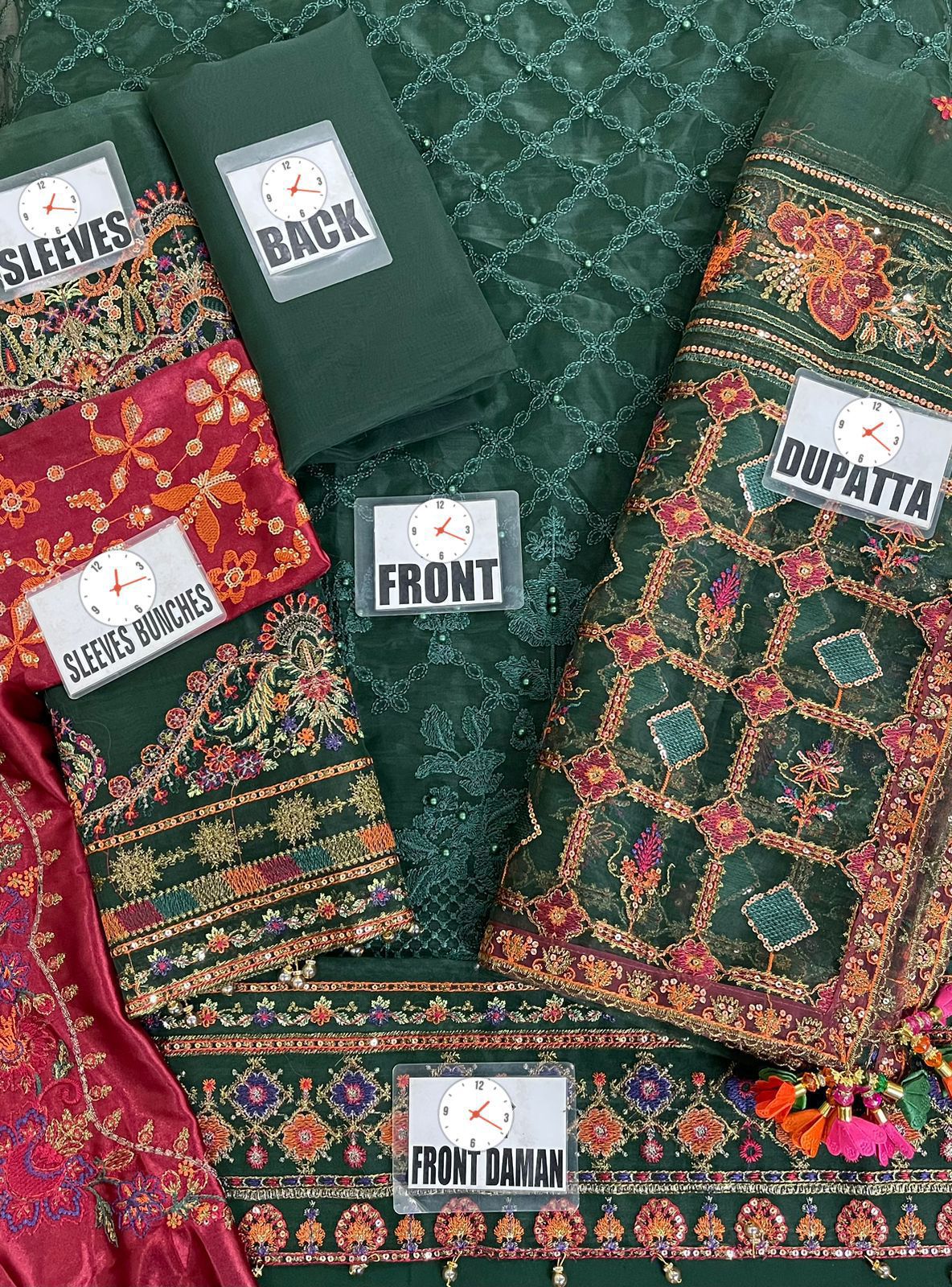 Whether you’re dressing for a celebration or a special evening, this outfit captures attention with its intricate embroidery and graceful flow. The luxurious organza fabric, detailed handwork, and timeless design make it a perfect addition to your wardrobe — elegant, refined, and effortlessly beautiful.