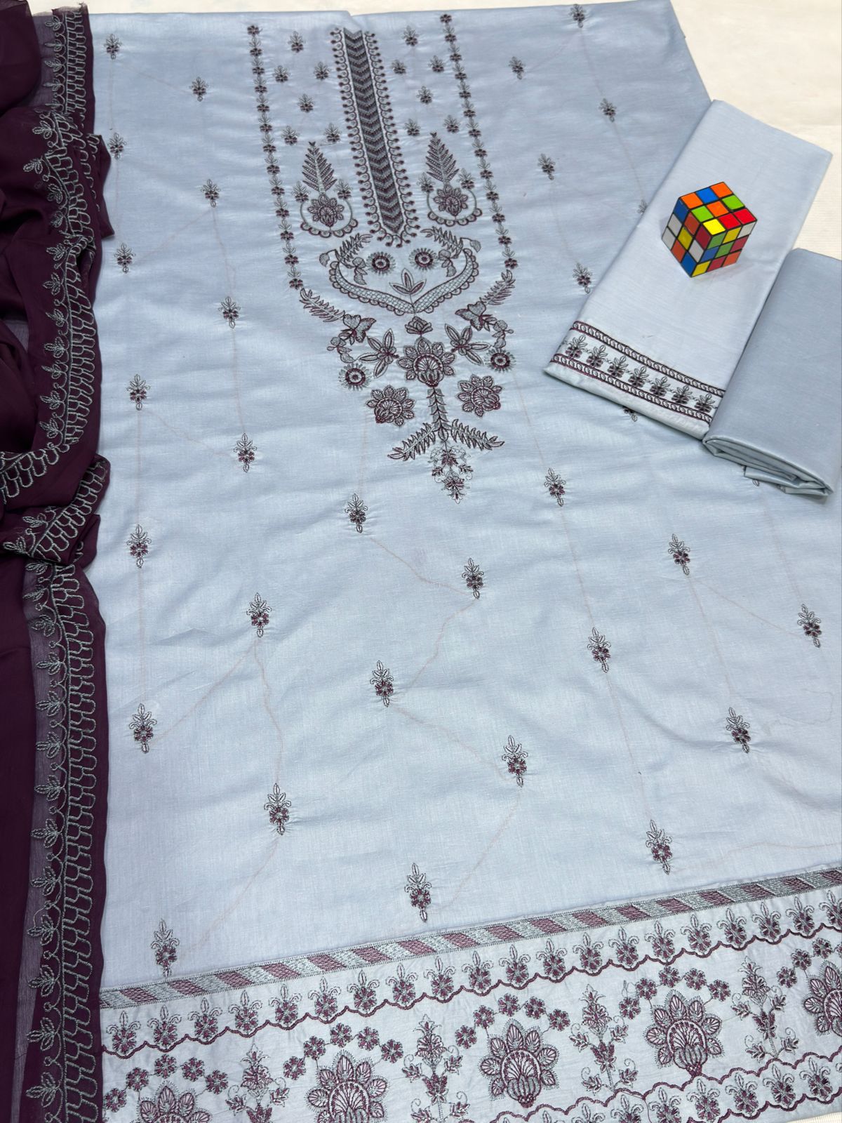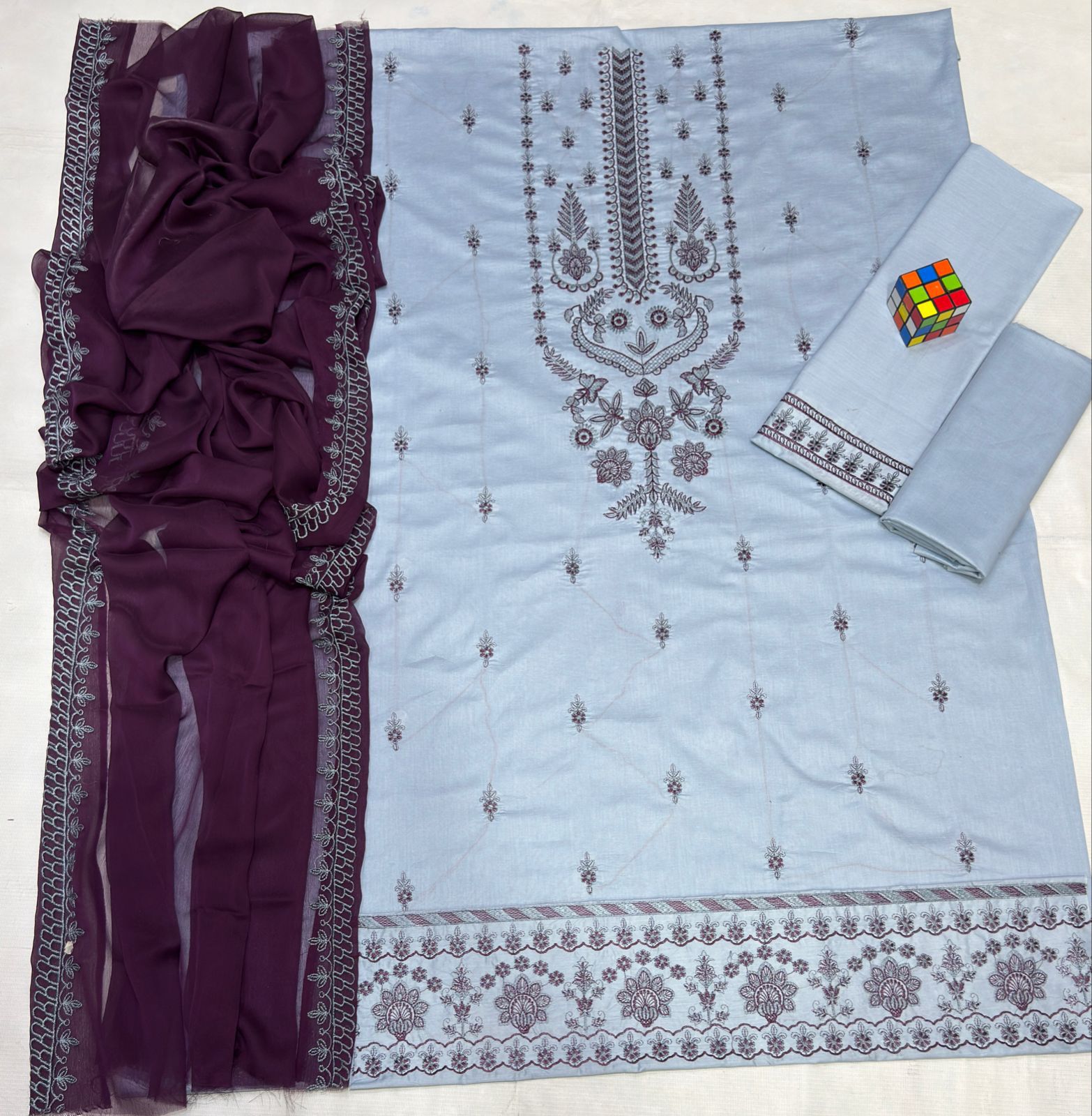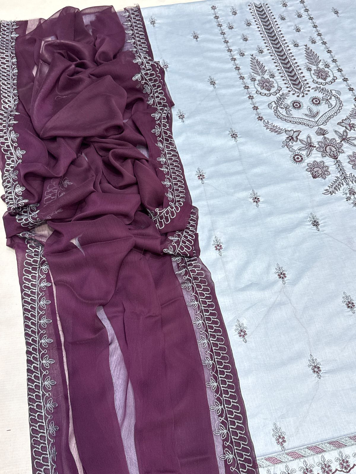 Step into summer with grace and sophistication. Crafted from premium Airjet Lawn 90/70, this beautifully designed ensemble features rich heavy embroidery and a graceful chiffon dupatta—perfect for festive gatherings and stylish day wear.