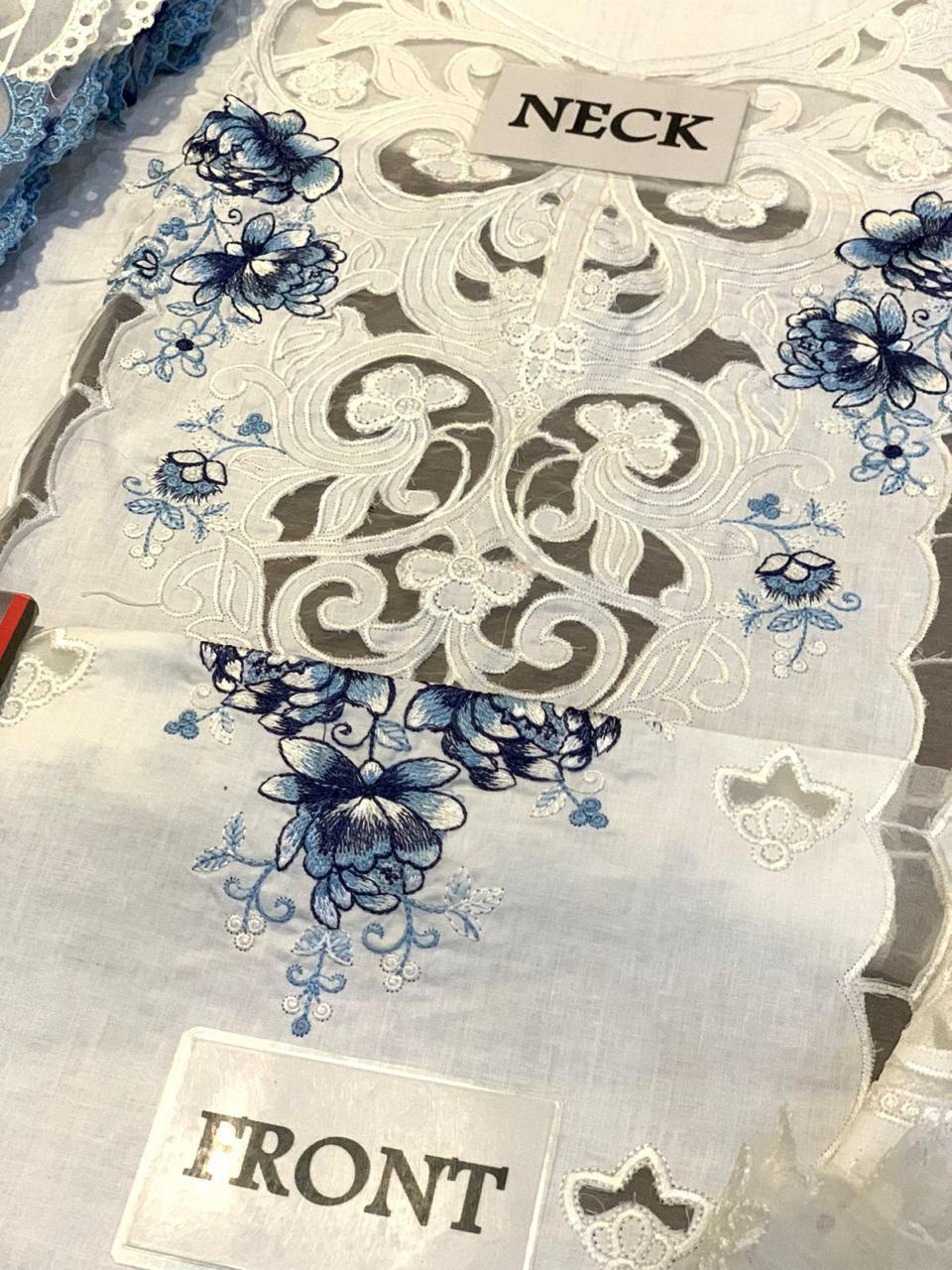 Embroidered border patches embellished with organza attachment, finished like original designer wear
