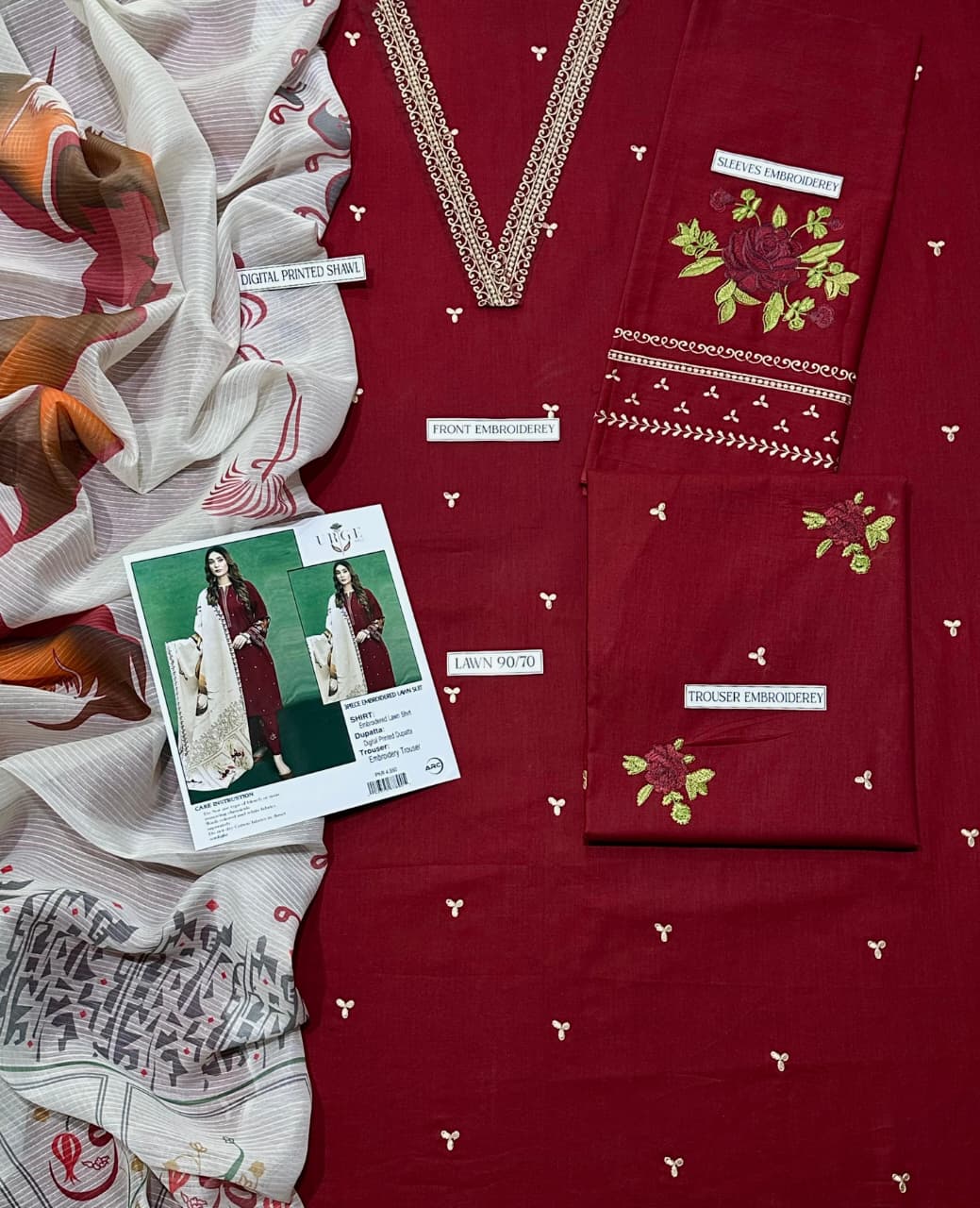 • Front: Fully heavy embroidered lawn, detailed with precision craftsmanship