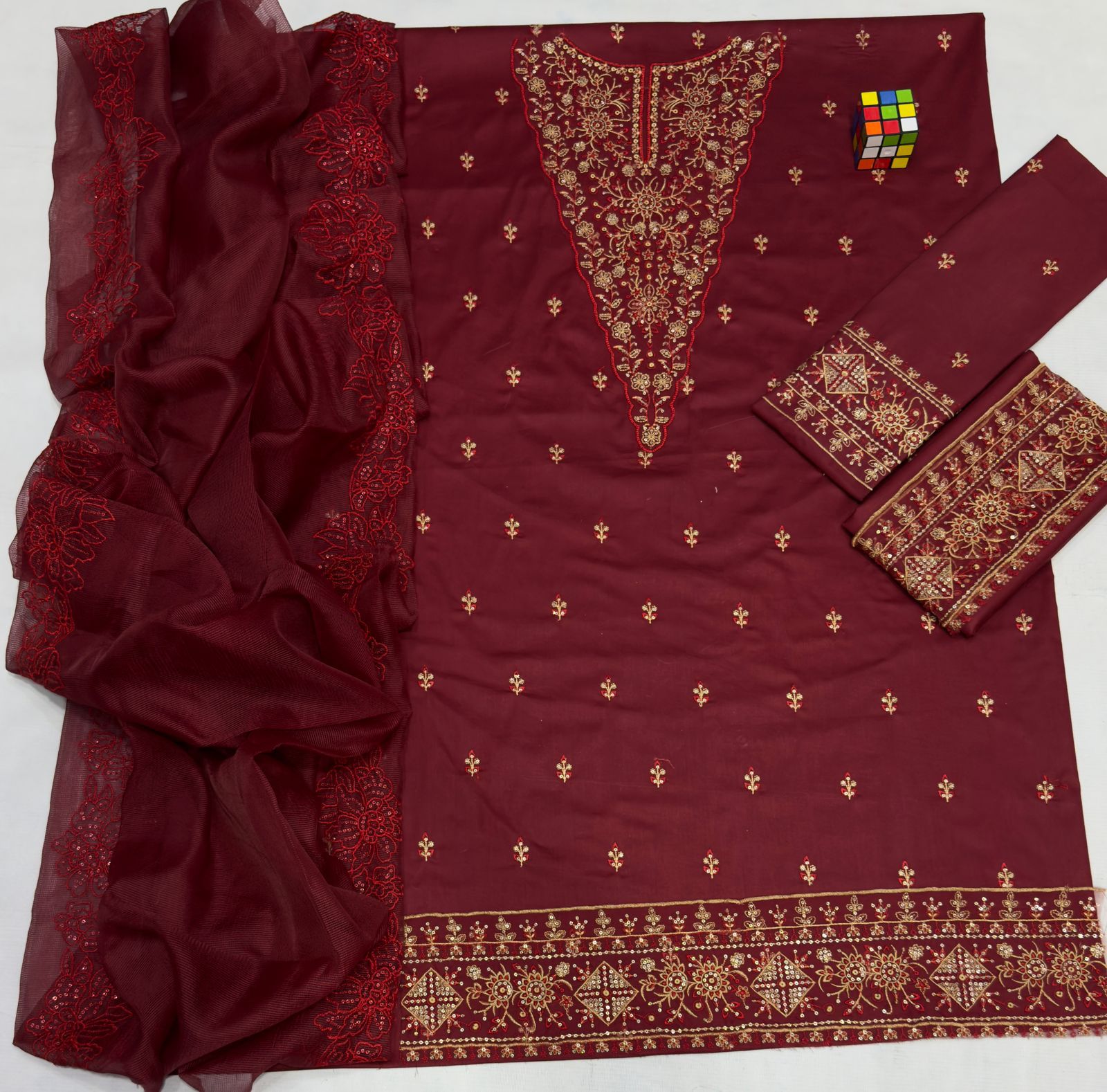 ✔️ Beautiful embroidered Khaddi Net dupatta