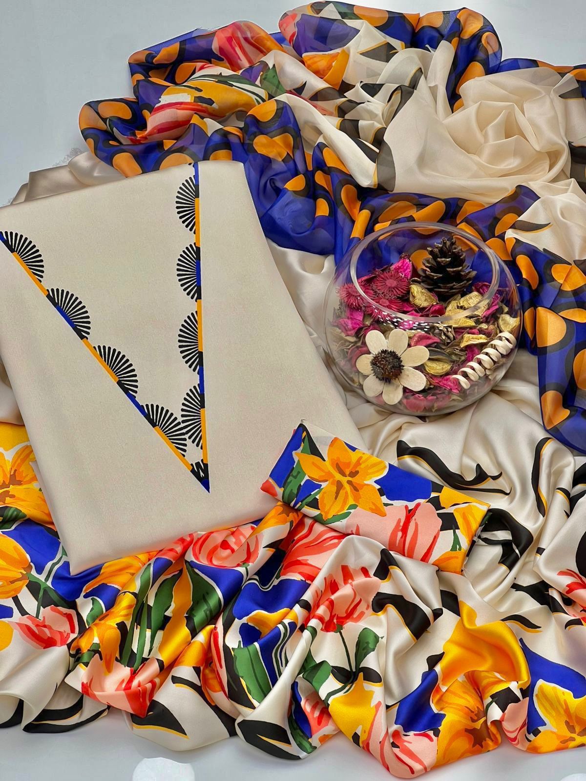 Luxurious silk fabric with striking prints