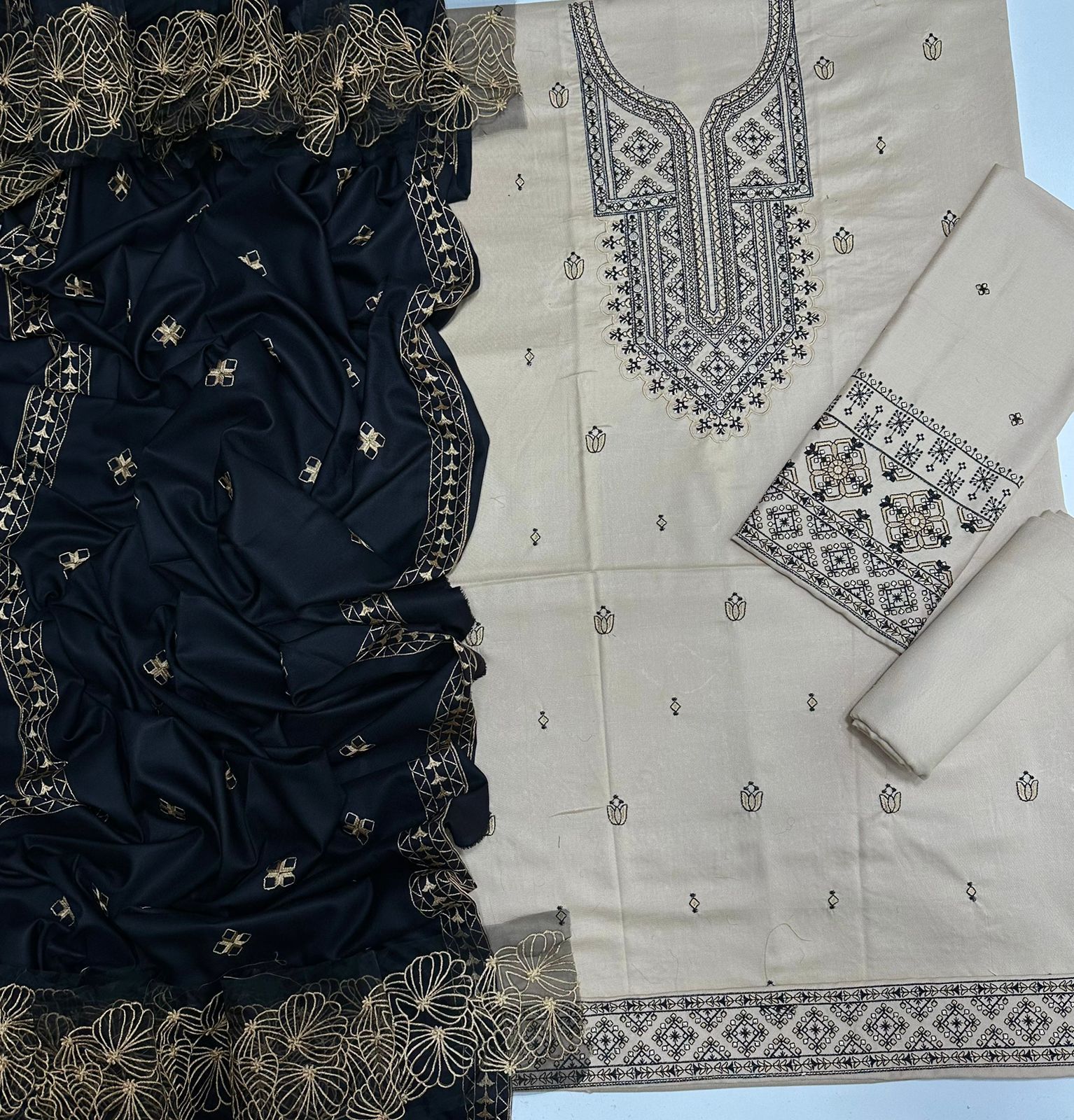 ✨ Luxury Embroidered 3-Piece Suit – Air Jet Dhanak Fabric ✨