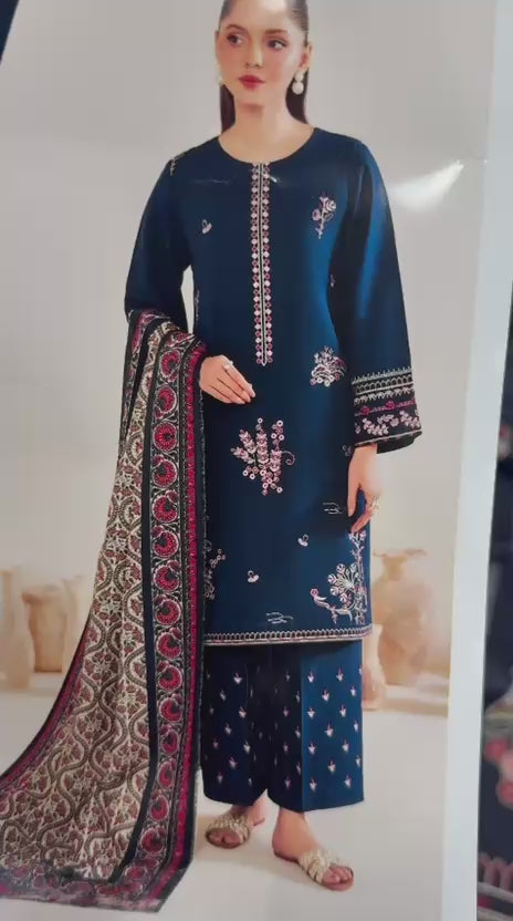 Add warmth and sophistication to your winter style with this premium Dhanak embroidered 3-piece suit — crafted for comfort, style, and lasting quality.