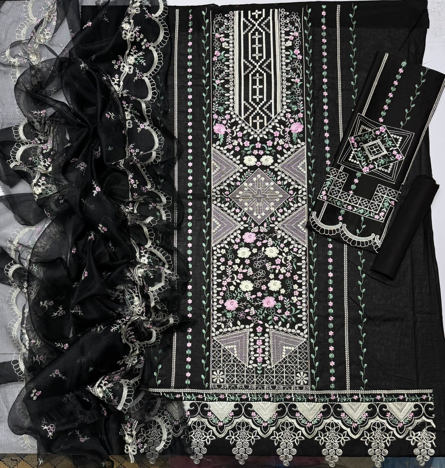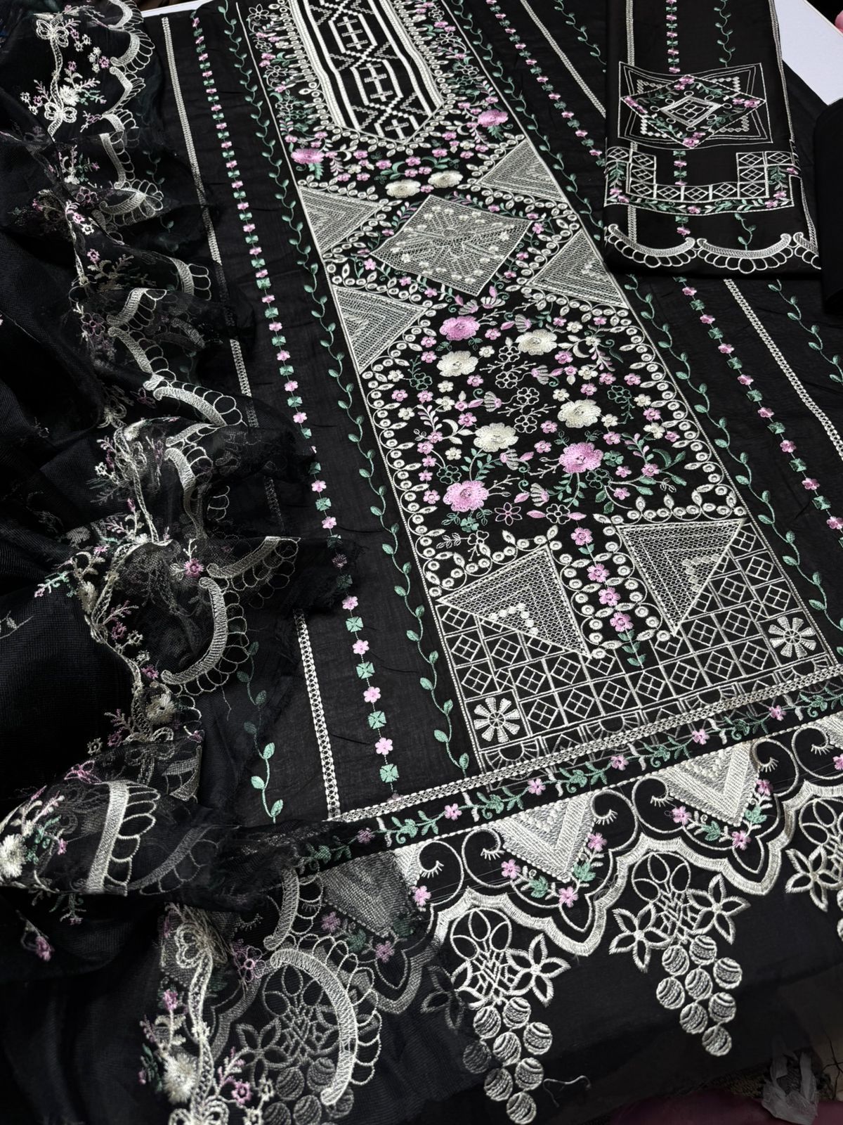 ✔️ Fully embroidered Khaddi Net dupatta