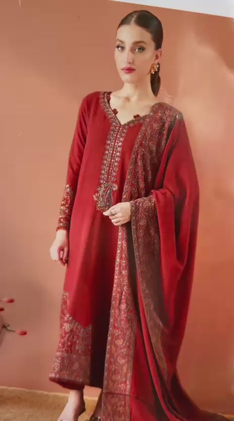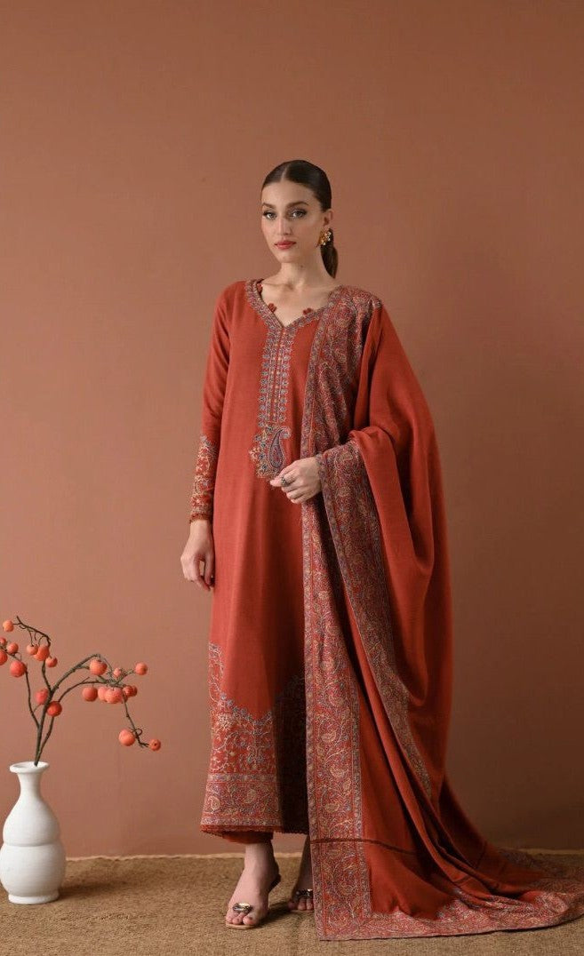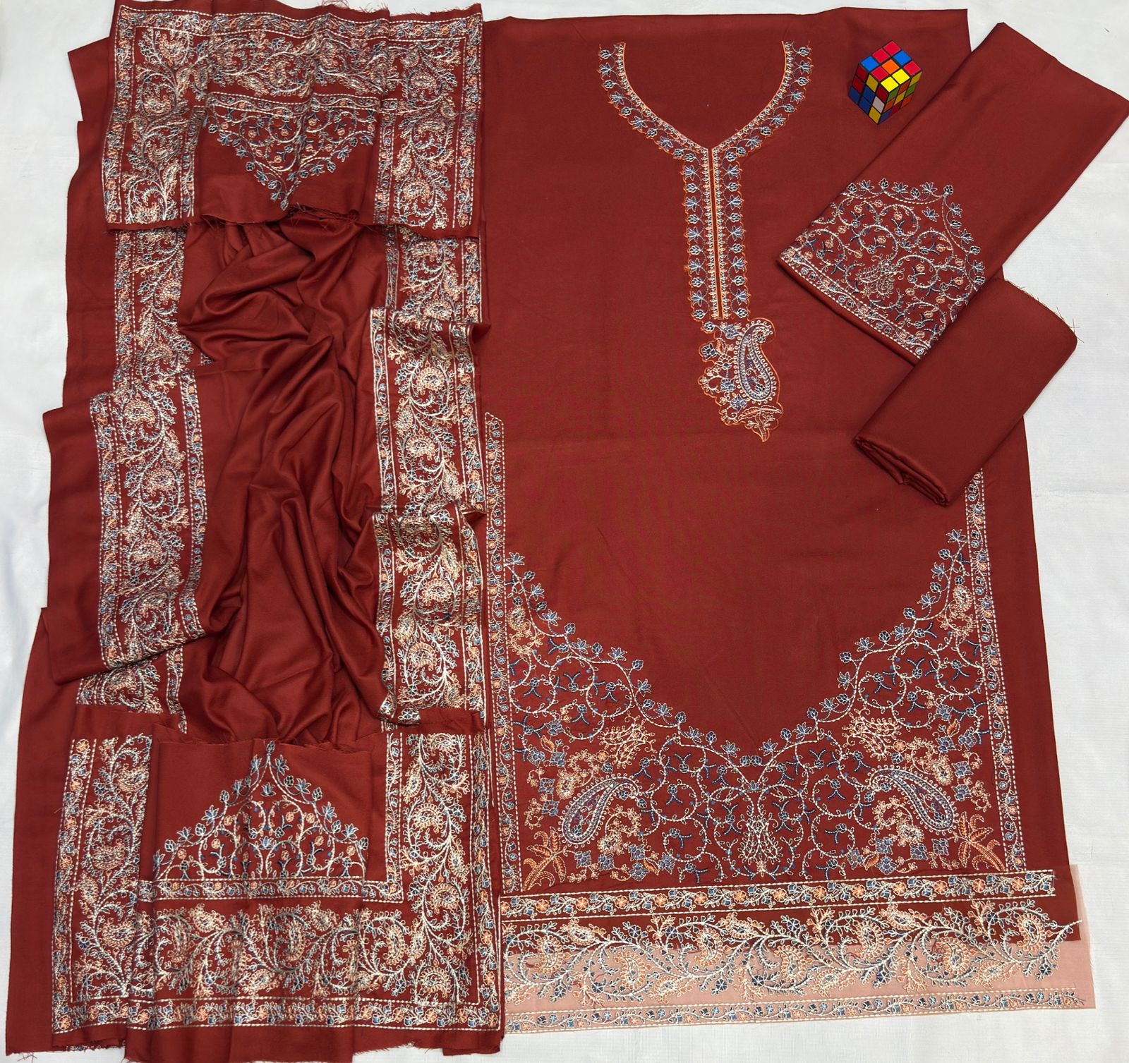 ✔️ Premium Dhanak Embroidered Shawl (Both Pallu Embroidered)
